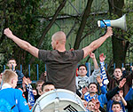 Dźwięk lokomotywy rozpoczynający spotkanie Lecha z Ruchem.