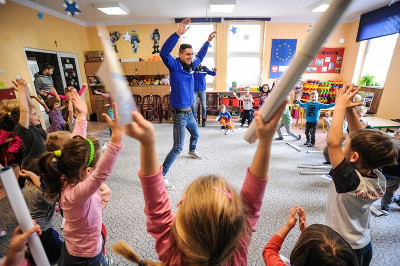 Marcin Malinowski i Wojciech Skaba odwiedzili dzieci z Przedszkola nr 4 w Chorzowie.