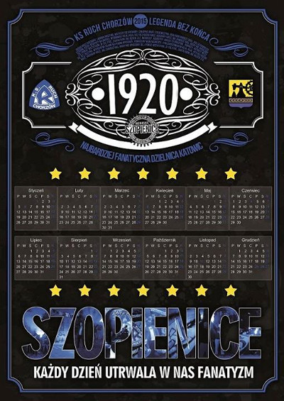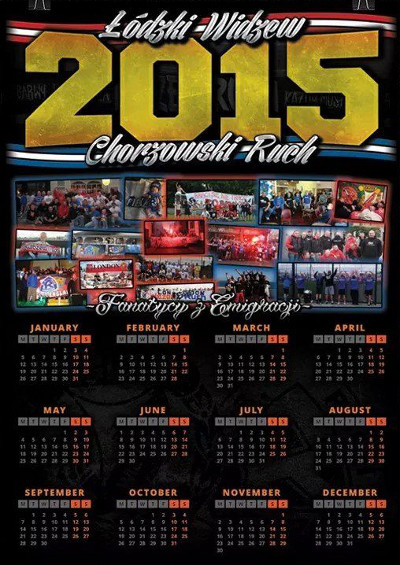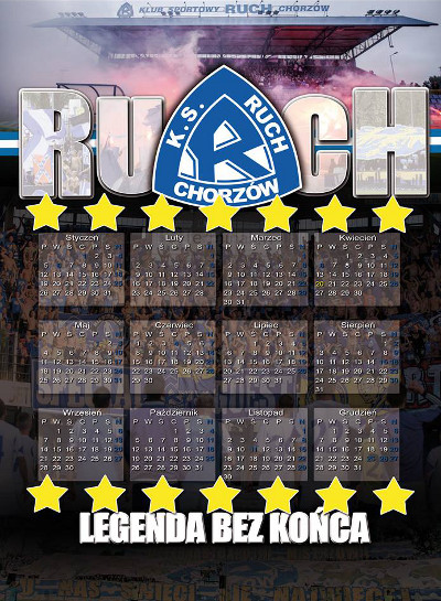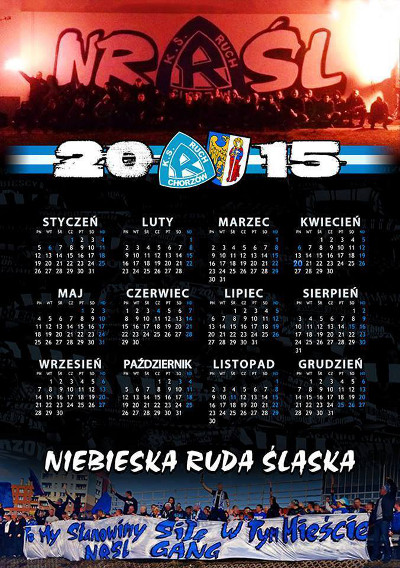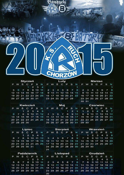 Chorzowski klub oraz kibice Niebieskich wydali łącznie kilkanaście kalendarzy na 2015 rok. Marketingowcy Ruchu stworzyli tym razem trzy - dwa trzynastostronicowe oraz planszowy. Fani 14-krotnych mistrzów Polski zdecydowali się na tę drugą opcję.