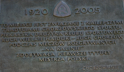 Z przykrością informujemy, że zaginęła tablica ufundowana przez mieszkańców Chorzowa, która upamiętniała najlepsze tradycje chorzowskiego sportu. Tablica była umieszczona na murach Szkoły Podstawowej nr 34 w Chorzowie naprzeciwko obecnych ogródków działkowych, tam gdzie w latach 30. znajdowało się boisko na "Kalinie", zwane "Hasiokiem". To tam rozgrywała swoje mecze drużyna Ruchu Wielkie Hajduki i zdobyła na nim w 1933 roku swoje pierwsze mistrzostwo Polski.