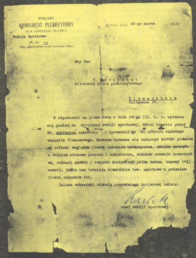 Tym dokumentem z lat plebiscytowych klub datuje początki swoich dziejów.