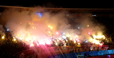 Wieczne Derby Belgradu od wielu lat stoją na znakomitym kibicowskim poziomie. Tym razem również było bardzo ciekawie. Kibice obu drużyn zaprezentowali oprawy, podczas których odpalili mnóstwo różnorakich środków pirotechnicznych. W pewnym momencie doszło także do awantur.