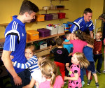 Na początku spotkania nasi piłkarze opowiedzieli kilka słów o sobie, a następnie zmierzyli się z pytaniami przedszkolaków. Po części mówionej przyszła pora na zajęcia ruchowe. Eduards i Patryk przeprowadzili dla wychowanków przedszkola trening. Dzieciaki z wielkim entuzjazmem i zaangażowaniem wykonywały ćwiczenia pokazywane przez piłkarzy. Na koniec, tradycyjnie, przyszedł czas na wspólne zdjęcia i wręczanie dzieciom klubowych plakatów. Wychowankowie przedszkola bardzo polubili Niebieskich, czemu wyraz dali serdecznie ściskając ich na pożegnanie.