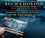 Rozpoczęła się sprzedaż karnetów na mecze Ruchu Chorzów. Cena wejściówki na cały sezon na sektory kosztuje zaledwie 180 złotych i obejmuje wszystkie mecze Ekstraklasy oraz Pucharu Polski. Co więcej, kibice którzy uczestniczą w programie lojalnościowym mogą liczyć na rabat sięgający 40%!