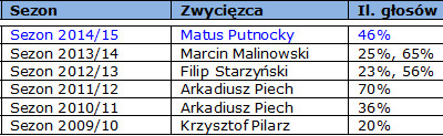 Matus Putnocky to póki co jedyny zawodnik, który wygrywał nasz plebiscyt i ma szanse to zrobić ponownie. Pozostali grają w innych klubach, bądź zakończyli karierę, przynajmniej na boiskach Ekstraklasy. Powinno to się zmienić jednak już jesienią, bowiem jak pokazuje początek sezonu - co najmniej kilku zawodników naprawdę dobrze się prezentuje.