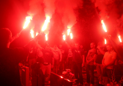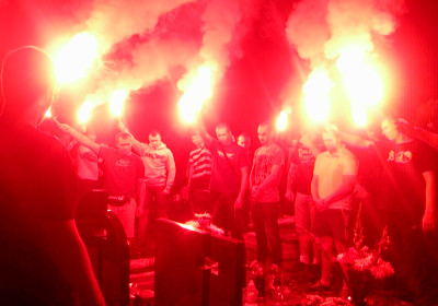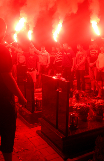 Sympatycy 14-krotnych mistrzów Polski zapalili znicze na grobie ¶p. Rajmunda, a także odpalili nad nim race. Poniżej prezentujemy kilka zdjęć, które nadesłała do nas Niebieska Ruda ¦l±ska.