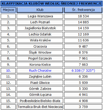 Zestawienie na podstawie: http://www.tylkoekstraklasa.pl/frekwencja/