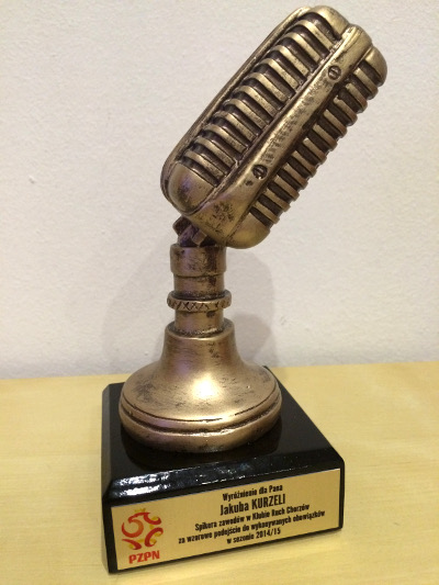 Kurzela znalazł się wśród trzech spikerów nagrodzonych przez PZPN. Wyróżnieni zostali również pracownicy Piasta Gliwice i GKS-u Bełchatów. - Jestem zaszczycony, że mogę stanąć na podium razem z Andrzejem Sługockim z Piasta Gliwice, którego uważam za najlepszego spikera w Polsce. To dla mnie motywacja do dalszej pracy i jeszcze większego przykładania się do swoich obowiązków - stwierdził urodzony w Świętochłowicach kibic Ruchu.