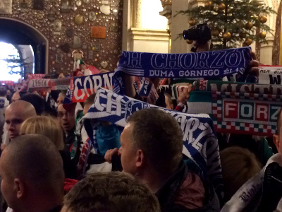 Sympatycy Niebieskich wzięli w sobotę udział w VIII ogólnopolskiej pielgrzymce kibiców na Jasną Górę. Wśród tysięcy szalików nie zabrakło barw chorzowskiego Ruchu, które zostały poświęcone pod koniec Eucharystii.