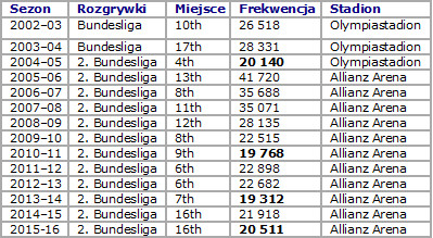 Za główną przyczynę mizerii fani monachijskich lwów uważają dzień, w którym podjęto decyzję o przenosinach na ogromny obiekt. W wyniku problemów finansowych Bayern odkupił udziały od TSV i stał się właścicielem piłkarskiej areny. Bawarski gigant dziś zawłaszcza sobie prawo do niemalże wszystkich wpływów komercyjnych, zaś lokalny rywal stał się jego wasalem. Nie dziwi fakt, że fanom TSV średnio odpowiada obecne położenie. Działacze klubowi podczas zagrożenia spadkiem do III ligi w ubiegłym sezonie zaczęli nawet rozważać wyprowadzkę i tutaj uwaga (!!!) na historyczny Grűnwalder Stadion mogący pomieścić 12,5 tys. widzów! Sprawę jednak komplikuje obowiązująca Bawarczyków umowa najmu zawarta aż do 2025 roku.
