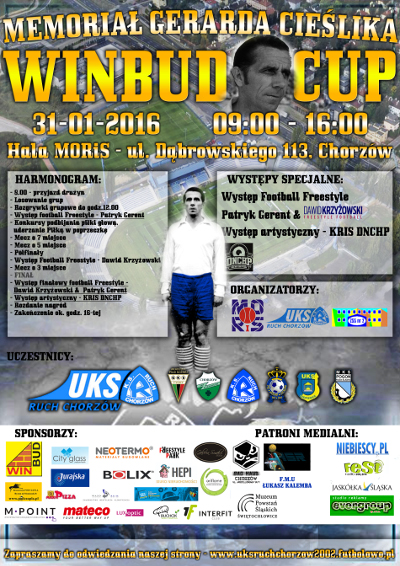 W najbliższą niedzielę w hali MORiS-u przy ul. Dąbrowskiego 113 odbędzie się Memoriał Gerarda Cieślika "Winbud Cup". Serdecznie zapraszamy wszystkich kibiców.