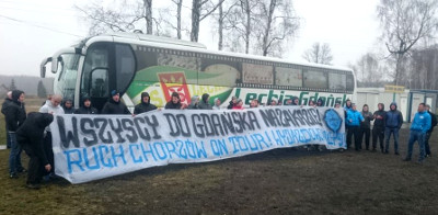 40-osobowa grupa kibiców Ruchu z "Bastionu Mikołów" pojawiła się w sobotę na treningu... Lechii Gdańsk. Fani Niebieskich chcieli przypomnieć o zbliżającym się wyjeździe do Trójmiasta oraz zmobilizować Grzegorza Kuświka do strzelenia hat-tricka w meczu z Górnikiem.