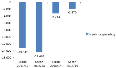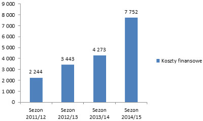7,7 mln zł - tyle obecnie wynoszą odsetki, które musi spłacić klub. Jeszcze w sezonie 2011/12 wynosiły 2,2 mln zł i z każdym sezonem stopniowo narastały. Przedstawia to dokładnie diagram numer 3. Narosły do tego stopnia, że ich spłata przy bieżącym funkcjonowaniu klubu stała się niemożliwa.