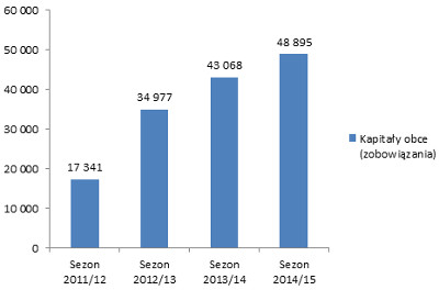 50 mln zł - to zobowiązania charakterystyczne, które raportuje klub do spłacenia w ciągu roku w ostatnim raporcie rocznym. W tym mieszczą się już pożyczki, kredyty, leasingi na wspomnianym poziomie 35 mln zł.