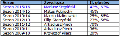 15 bramek strzelonych w 34 ligowych spotkaniach oraz dorosła postawa wynikająca zapewne z dotychczasowych doświadczeń sprawiły, że Mariusz Stępiński został przez nas wybrany najlepszym zawodnikiem dopiero co zakończonego sezonu. Wygrał bezdyskusyjnie, otrzymując w dwóch głosowaniach najwyższą ilość głosów.