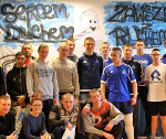 Od razu po przyjeździe Niebiescy zostali zaproszeni przez dyrekcję ośrodka na obiad, a następnie udali się do świetlicy, gdzie czekała na nich młodzież. Chłopcy przygotowali na powitanie piłkarzy oprawę w postaci wielkiego transparentu przymocowanego do ściany. Kiedy zawodnicy przywitali się z wychowankami zakładu, rozpoczęła się pierwsza część spotkania, podczas której "Monet" i "Arczi" odpowiadali na pytania chłopaków i ich wychowawców. Piłkarze mówili o wielkim wpływie kibicowskiego dopingu na ich grę, opowiadali o swoich codziennych przygotowaniach do ligowych zmagań, a także o drodze, jaką musieli przejść, aby spełnić swoje marzenia o karierze piłkarskiej. Przekonywali, że sukces można osiągnąć tylko dzięki ciężkiej pracy nad sobą i ciągłych wyrzeczeniach.
