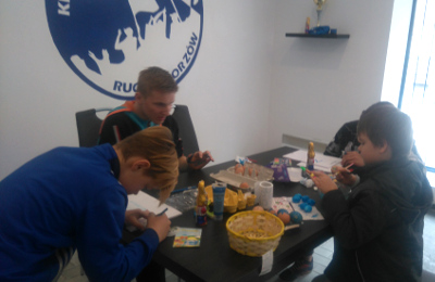 W ośrodku Kibice Razem Ruch Chorzów rozpoczęły się przygotowania do Świąt Wielkiejnocy. - Dzieci, które codziennie odwiedzają nasz ośrodek oraz regularnie pojawiają się na domowych meczach Niebieskich, wzięły udział w wielkanocnym malowaniu jajek. Zabawa była przednia - mówi Karolina Krupa.