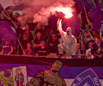 Wraz z opadnięciem po kilku minutach sektorówek, na trybunach dostrzec mogliśmy zagorzałych piromaniaków, którzy stworzyli efektowny pokaz z wykorzystaniem rac. Jak wiadomo ogień jest krótkotrwałym zjawiskiem i kwintesencją niestałości. Pojawia się nagle, znikąd i wykonując swój majestatyczny taniec głodu zmienia wszystko co żywe w nicość, zostawiając tylko popiół. Czyli idealnie odzwierciedla sytuację w klubie, jakiej jesteśmy świadkami...