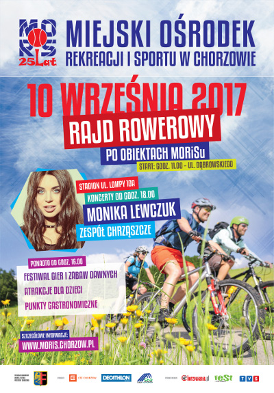 Pierwszym punktem programu będzie urodzinowy Rajd Rowerowy szlakiem MORiS Chorzów, podczas którego uczestnicy będą mieli niepowtarzalną okazję zwiedzić wszystkie obiekty sportowe, poznać ich historię oraz kluby, które na co dzień z nich korzystają. Dodatkowo dla uczestników, którzy odwiedzą wszystkie obiekty, MORiS przygotował loterię z atrakcyjnymi nagrodami. Aby wziąć udział w Rajdzie należy zgłosić swoje uczestnictwo poprzez formularz zgłoszeniowy dostępny na stronie: