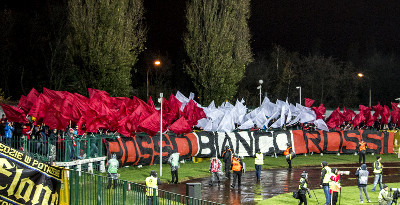 Ultrasowali także fani "Czarnych Koszul", którzy ubrani byli w pelerynki w barwach swojego klubu. Zaprezentowali m.in. serpentyny, flagowisko, sektorówkę oraz transparent "Bo to jest stara szkoła ostrego jarania". Odpalili ponadto mnóstwo pirotechniki. Na stadionie zasiadło tego dnia 5450 widzów.