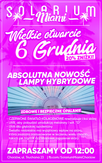 Solarium Miami - 6 grudnia wielkie otwarcie! Rabaty dla kibiców