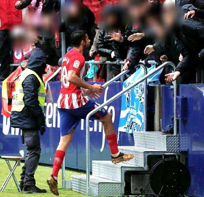 Kibice oraz sam Diego Costa oszaleli z radości. Napastnik pobiegł za bramkę i wbiegł na schody, obok których wisiała flaga z herbem chorzowskiego Ruchu! Brazylijczyk wpadł w ramiona sympatyków i to wszystko nie spodobało się sędziemu, który wykazał się wyjątkową drobiazgowością. Costa po chwili wrócił na boisko, ale tylko na chwilę, bo arbiter pokazał mu żółtą kartkę. Drugą w tym meczu, co skutkowało tym, że zawodnik w 68. minucie musiał pójść do szatni.