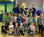 Piłkarze Ruchu Michał Rutkowski i Kamil Słoma wraz z maskotką klubową Adlerem odwiedzili wychowanków Przedszkola nr 29 w Chorzowie w ramach akcji "Futblolandia".