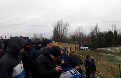 86 kibiców Ruchu Chorzów wsparło Elanę Toruń na wyjazdowym meczu z Rozwojem Katowice, który odbył się w środowe popołudnie. "Niebieska Szarańcza" miała ze sobą flagę "Chachary", a na płocie zawisły także dwa płótna Elanowców - "Śp. Mucha" oraz "19[E]68".