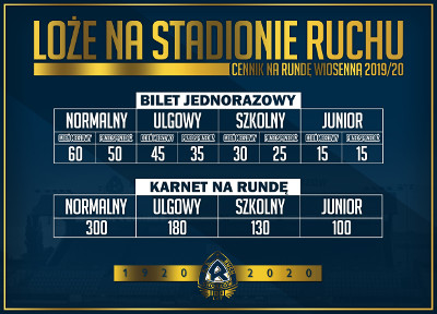 Ruch Chorzów uruchomił sprzedaż biletów i karnetów na miejsca w lożach na stadionie przy Cichej.