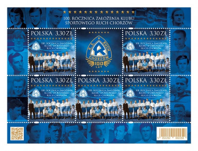 20 kwietnia Poczta Polska wprowadzi do obiegu znaczek emisji "100. rocznica założenia Klubu Sportowego Ruch Chorzów".
