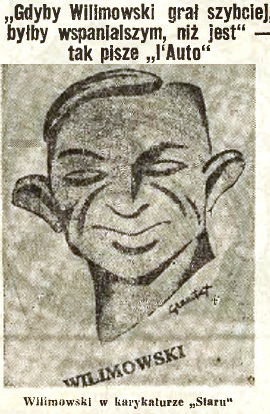 Karykatura Ernesta Wilimowskiego podczas Mistrzostw Świata w 1938 roku. Zdjęcie: 7 Groszy, Ag.Polonji.