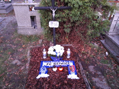 Wtorek. Zaraz po swojej pracy, jeden z kibiców Ruchu z Gliwic wybrał się sprawdzić grób Teodora Mazura, który został wspomniany w powyższej wiadomości. Cmentarz Centralny w Gliwicach do małych nekropolii nie należy, co prawda znaliśmy sektor, w którym znajdować się miał nagrobek, jednakże zmrok znacząco utrudniał poszukiwania. Przechodząc tam i z powrotem uznaliśmy, że prawdopodobnie grób został już zlikwidowany. Na sam koniec włączyliśmy jeszcze dokładną mapę sektora cmentarza i podjęliśmy ostatnią próbę znalezienia grobu. Dochodzimy do prawdopodobnej lokalizacji, lecz widzimy jedynie kępę krzaków, zapalamy latarkę i przyglądamy się bliżej. Jest! Pod ogromną ilością gałęzi znajduje się zniszczona już tabliczka z nazwiskiem Teodora Mazura i jego żony. "Grób", chociaż trudno użyć tego określenia do tego co zastaliśmy przedstawiał sobą dramatyczny wygląd. Krzaki sięgające dwóch metrów, duża liczba znajdujących się tam śmieci, przekrzywiony krzyż… jednym słowem dramat!