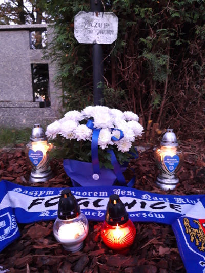 Czwartek. Delegacja kibiców FC Gliwice złożyła w imieniu KS Ruch Chorzów wieniec oraz zapaliła znicze na grobie bramkarza Ruchu Wielkie Hajduki oraz Czarnych Lwów. Z deklaracji Grzegorza Joszko usłyszeliśmy, iż o Teodorze Mazurze kibice będą mogli przeczytać w drugiej części "Historii Ruchu Chorzów". My cieszymy się, że mogliśmy uratować jeden z ostatnich istniejących grobów piłkarzy Ruchu z początków jego historii. Wiemy także, że sprawa nie jest do końca załatwiona, ponieważ konieczne jest zainstalowanie kamiennego nagrobka. W tym temacie będziemy prosić kibiców o wsparcie. Członkowie FC Gliwice zapewnili, iż dbać będą o grób, a także zadeklarowali pomoc finansową w ufundowaniu nagrobka. Pamiętajcie - nie umiera Ten, kto żyje w sercach bliskich...