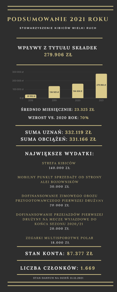 Stowarzyszenie Kibiców Wielki Ruch przedstawiło podsumowanie 2021 roku. Zapraszamy do przeczytania oraz wspierania WR!