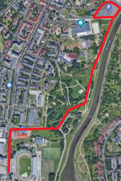 W Rzeszowie parkujemy na parkingu "PODPROMIE" który znajduje się na zdjęciu poniżej.