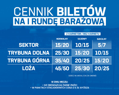 Ruszyła sprzedaż biletów na mecz I rundy baraży o awans do I ligi. Prosimy o zapoznanie się z poniższymi informacjami.