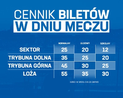 W dniu meczu finałowego zniżki dla karnetowiczów nie będą obowiązywać, a w sprzedaży stacjonarnej ceny biletów będą o 5 zł wyższe (od podstawowego cennika);