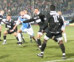 Obie ekipy po 5. seriach spotkań mają na koncie 10 punktów, ale wyżej - dzięki lepszemu bilansowi bramek - plasują się "Czarne Koszule". Zespół, który do najwyższej klasy rozgrywkowej awansował dzięki fuzji z Dyskobolią Grodzisk, otwiera tabelę.