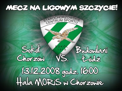 W meczu kończącym pierwszą rundę spotkań, Sokół Chorzów podejmie naszpikowaną gwiazdami drużynę Budowlanych Łódź. Zwycięzca tego spotkania zostanie mistrzem rundy jesiennej.