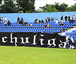 Na płotach zawisło 9 flag: "Psycho Fans", "Naszym Honorem Jest Nasz Klub – KS RUCH CHORZÓW", "RUCH", "Szarańcza", "Chuliganeria", "Władcy Torunia" (Elany Toruń), "Radlin", "Kęty", "Gůrny Ślůnsk" oraz 3 małe fanki Atletico Madryt.