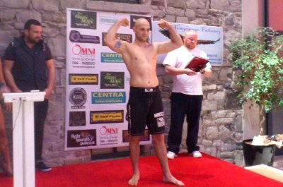 Z przyjemnością informujemy, że Maciek walczył pod patronatem Niebiescy.pl, a logo naszego serwisu znalazło się na jego spodenkach. Jak widać, przynieśliśmy szczęście, bo walka zakończyła się jego zwycięstwem przez TKO (techniczny nokaut) po 1,03 min.