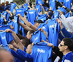 Aktualizacja! Około 3.300 kibiców Ruchu Chorzów - w tym delegacje fanów Widzewa Łódź, Elany Toruń, Slovana Bratysława, Zbrojovki Brno, Igloopolu Dębica oraz Pogoni Staszów - zjawiło się na finale Pucharu Polski w Kielcach. Sympatycy "Niebieskich", ubrani w jednakowe niebieskie t-shirty, prowadzili bardzo dobry doping, który w wielu momentach robił ogromne wrażenie. Odpalili ponadto sporo pirotechniki i bawili się bez koszulek. Zapraszamy do obejrzenia filmików.