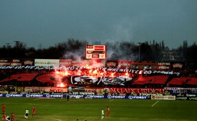 Toruńscy piłkarze przełamali się w spotkaniu z Calisią Kalisz, które wygrali 2:1. Środek tygodnia sprowadził do młyna 170 Elanowców, którzy wywiesili na płotach 5 flag: "Toruńska Elana", "Ostaszewo", "Mokre", "Rubinkowo" oraz "Jarosław Maćkiewicz".