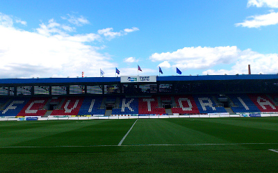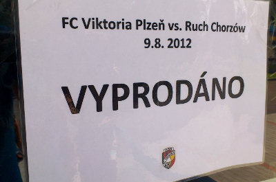 Około południa, tuż po przyjeździe do Pilzna, udało nam się wejść na stadion Viktorii. Miejscowi obkleili obiekt kartkami z informacją, że wszystkie bilety zostały wyprzedane.