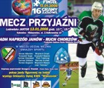 Już za tydzień odbędzie się XVI Finał Wielkiej Orkiestry Świątecznej Pomocy. Z tej okazji na lodowisku Jantor w Katowicach przy ul. Z. Nałkowskiej 10 odbędzie się wielki mecz przyjaźni pomiędzy hokeistami Naprzodu Janów i piłkarzami Ruchu Chorzów.