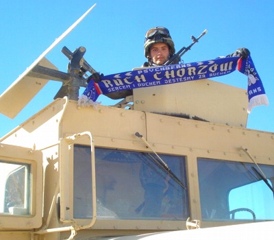 Jeden z sympatyków Ruch przebywa tam na misji pokojowej w bazie Wazi Khwa położonej 2.600 m n.p.m. Niestety, nie będzie mu dane obejrzeć marcowych Wielkich Derbów Śląska, bo wraca stamtąd dopiero w maju. Za naszym pośrednictwem postanowił jednak przesłać zdjęcia. – Niech ludzie widzą, że "Niebiescy" są wszędzie – podkreślił fan Ruchu, pochodzący z Katowic-Panewnik.