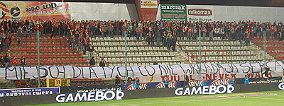 Widzewiacy nie mają ostatnio powodów do radości. Po porażce z ŁKS-em, w miniony piątek piłkarze z al. Piłsudskiego drugi raz z rzędu zeszli z boiska pokonani. Tym razem lepsza była Polonia Bytom, która wygrała 4:2 i wróciła na Górny Śląsk z trzema punktami. Na trybunach od samego początku meczu trwał festiwal "pozdrowień" w kierunku trenera, działaczy oraz zawodników Widzewa. To protest za słabą postawę graczy i ogólną złą kondycję klubu. Normalny doping miał miejsce tylko w przerwie spotkania. Dobrze zaprezentowali się bytomianie, których w sektorze gości pojawiło się 350. Rozwinęli oni sektorówkę, którą uzupełniły kartony w barwach klubu, machali flagami na kijach oraz odpalili ognie wrocławskie.