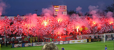 W środę kibice Widzewa zanotowali natomiast ostatni wyjazd w tym sezonie. I choć na spotkanie w Kielcach mieli oni zakaz wyjazdowy (a działacze Korony zapowiedzieli, że nie wpuszczą nikogo z Łodzi), to i tak spora grupa "Czerwonej Armii" znalazła się na jednym z najnowocześniejszych obiektów w Polsce. Oczywiście nie obyło się bez kombinowania. Widzewiacy starali się wejść na wszelkie możliwe sposoby. Ostatecznie udało się to 130 osobom, które zebrały się przy sektorze dla gości. Gdy tylko ujawnili swoją obecność, zostali okrążeni przez ochronę. Kilkadziesiąt kibiców Widzewa niestety zostało przed bramami stadionu.