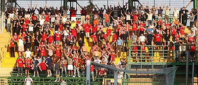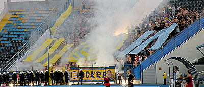 Elana Toruń: Derby niestety nie dla Elany. Torunianie przegrali z Zawiszą 2:0. Na trybunach jednak nasi bracia bardzo dobrze się pokazali. W Bydgoszczy zameldowało się ich 430 (w tym 7 fanów Jezioraka Iława). Na trasie i pod stadionem widoczne były duże ilości policji. Mimo, iż kibice żółto-niebieskich na miejscu byli już około godzinę przed meczem, ostatnie osoby na sektor wpuszczono 10 minut przed końcem pierwszej połowy... Na płocie wywieszono 6 flag: "Grubasy", "Mokre", "Aleksandrów Kujawski", "Ekipa zza Wisły" oraz "Forever Ruch" i "Jeziorowcy". Elanowcy przez cały czas prowadzili konkretny doping, znakomicie bawiąc się. Zaprezentowali też sektorówkę (herb) i pasy materiału podświetlone stroboskopami.