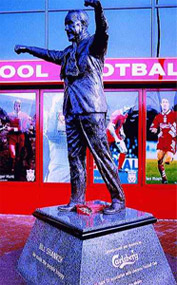 zdobycie kolejnego tytułu Mistrza Anglii, jeden z kibiców ze wspomnianej trybuny rzucił na murawę ów szalik. Nadgorliwy policjant chciał go wyrzucić, tymczasem ubiegł go Bill Shankly. Powiedział wówczas do policjanta: "Dla Ciebie to tylko szalik, a dla tego chłopca to całe życie", po czym zawiązał go sobie na szyi. Pomnik waży 750 kg, został wcześniej zatwierdzony oraz w całości sfinansowany przez firmę Carlsberg. Na cokole pomnika widnieje napis: "Bill Shankly – sprawiał, że ludzie czuli się szczęśliwi". W mieście istnieje także brama imienia legendarnego trenera, a kibice stworzyli także stronę internetową poświęconą w całości swojej legendzie (www.shankly.com). Mimo, że Liverpool nie jest najpiękniejszym miastem na świecie, dzięki takim elementom nie trudno poczuć jego magiczną atmosferę, atmosferę miasta zakochanego w muzyce i piłce nożnej.